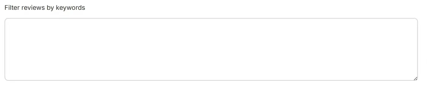 Section titled “2. Multi-line Textarea (textarea)”{ "title": "Filter reviews by keywords", "name": "keywords", "type": "string", "editor": "textarea"}