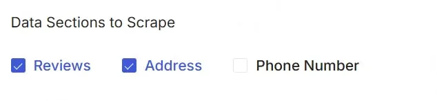 Section titled “6. Checkbox Group (checkbox)”{ "title": "Data Sections to Scrape", "name": "data_sections", "type": "array", "editor": "checkboxGroup", "options": [ { "label": "Reviews", "value": "reviews" }, { "label": "Address", "value": "address" }, { "label": "Phone Number", "value": "phone_number" } ], "default": ["reviews", "address"]}