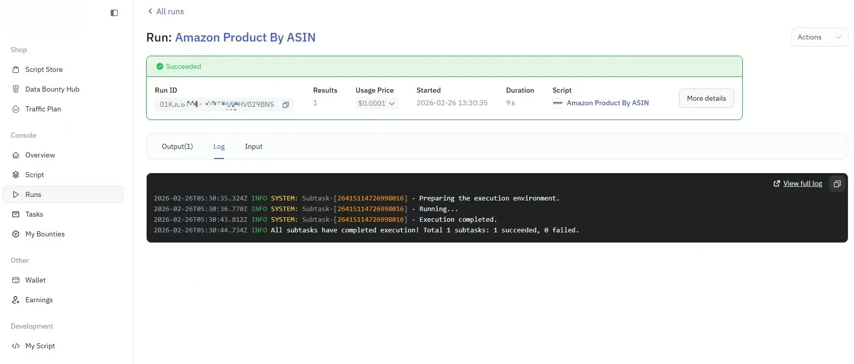 All activities occurring inside the Worker can be viewed in the Worker Run details, along with the Worker Run logs.