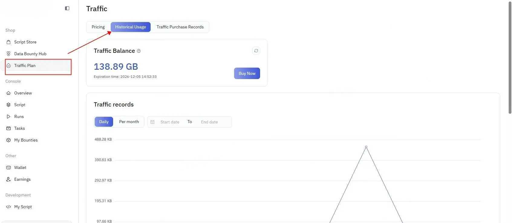 Section titled “Traffic Usage Records”